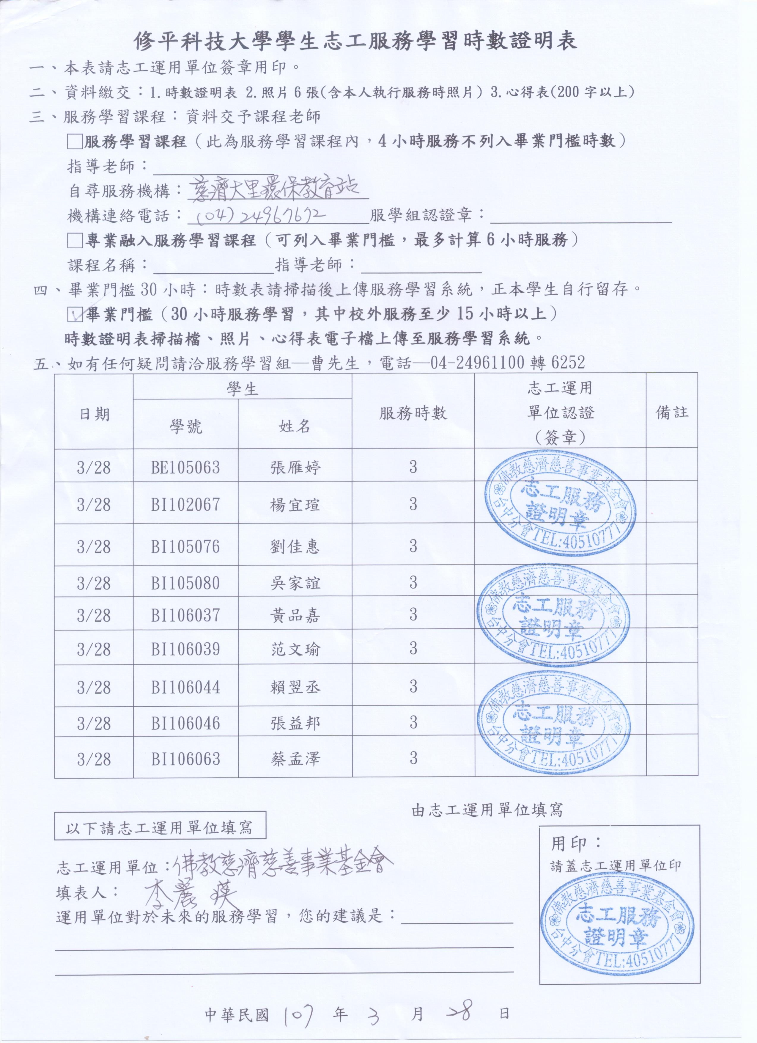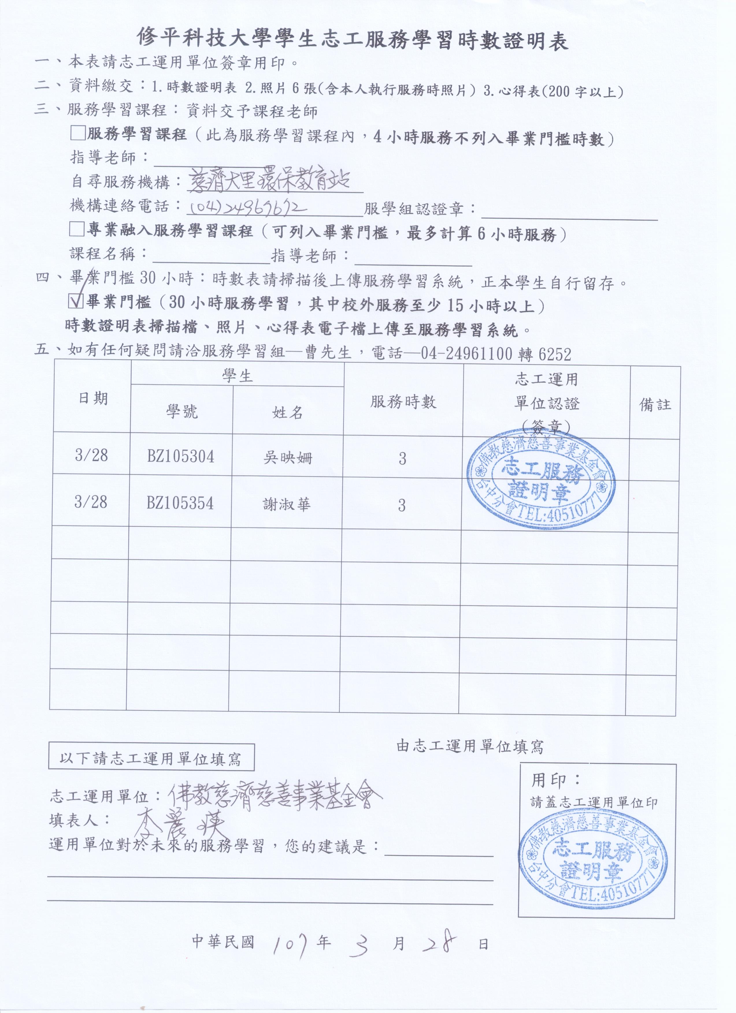 3月28日環保站服務學習時數表下載-如附檔