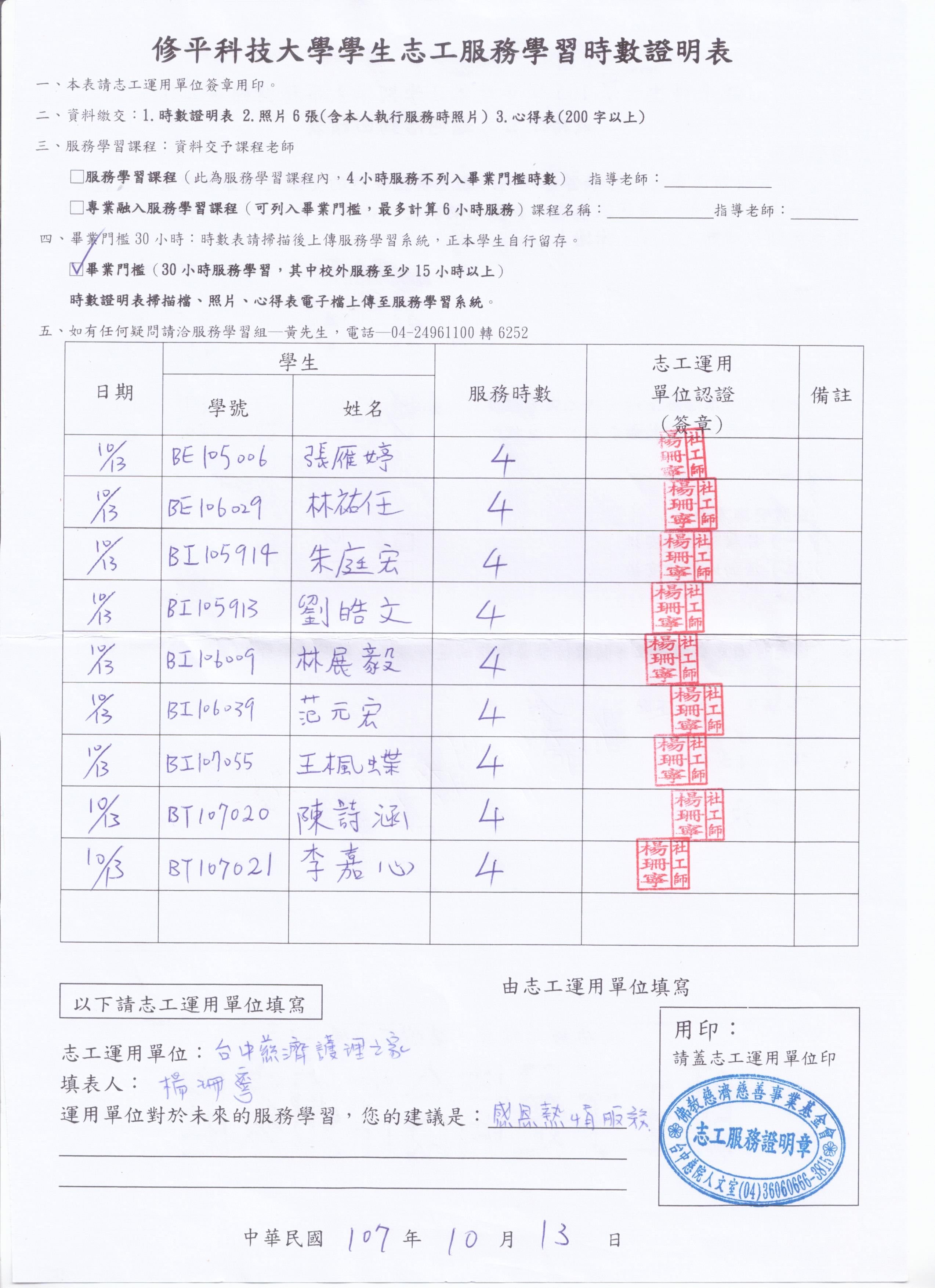 如附檔, 需傳時數表,心得表,與照片三者由SIS上傳繳交給服學組, 其中心得除了由SIS上傳繳交給服學組之外,另請mail: ssching@hust.edu.tw 信件標題:xxx慈院護理之家心得 , xxx為姓名