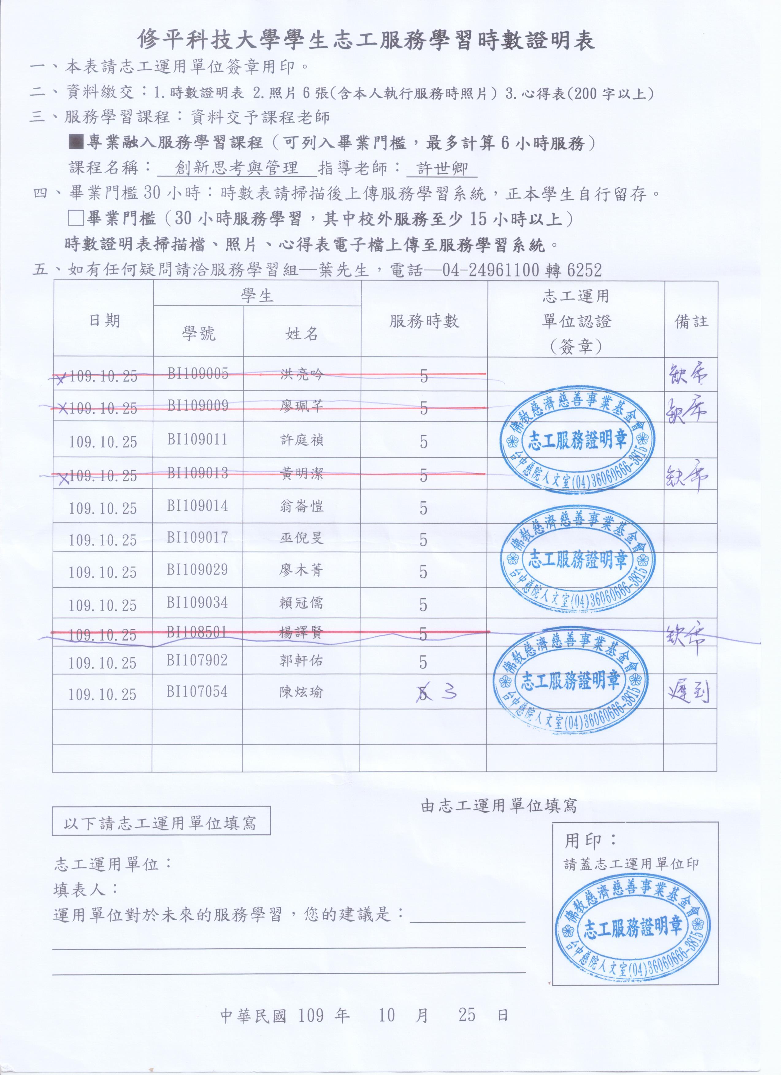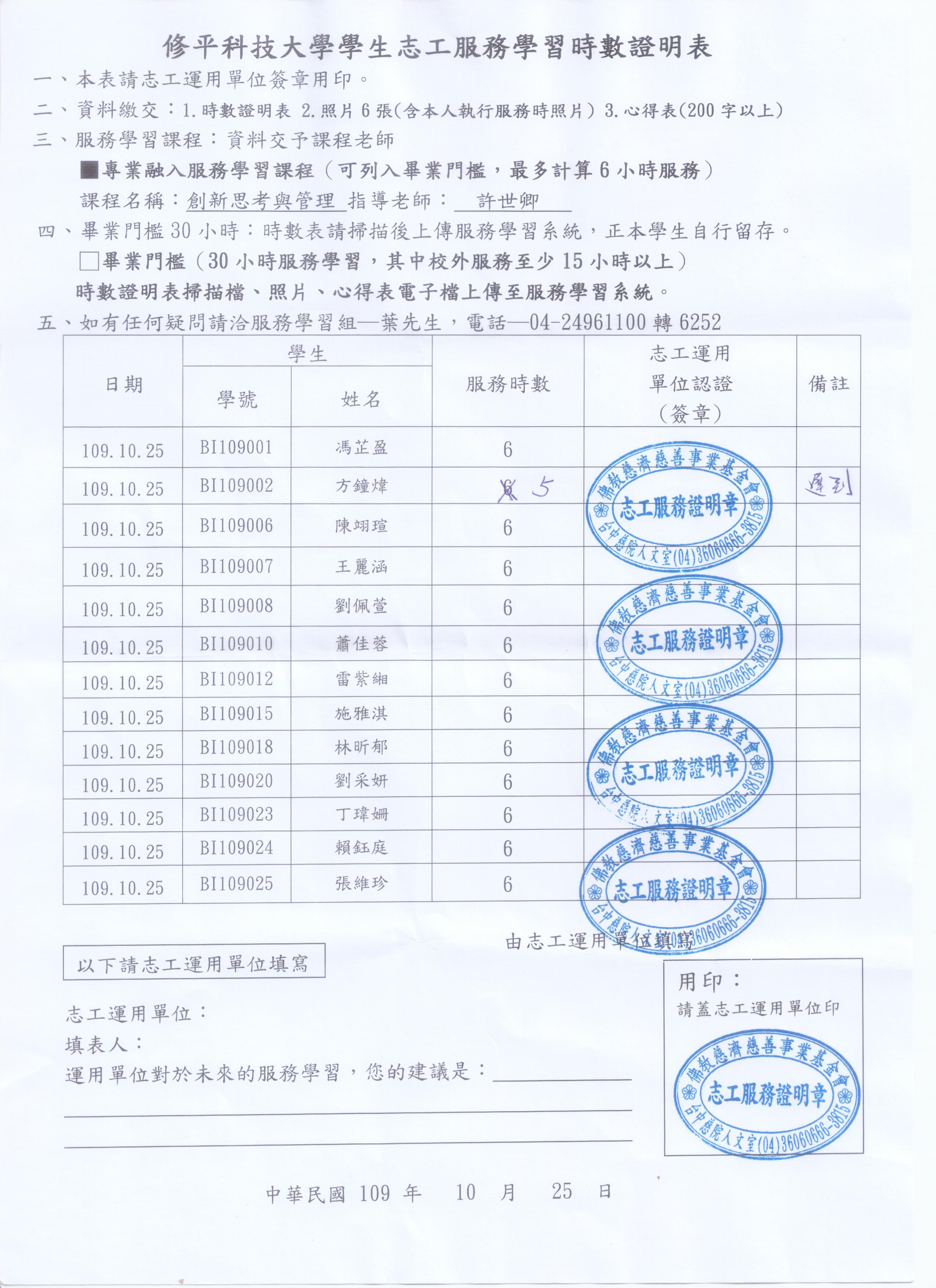 2020/10/25慈義醫院志工服務學習服務時數與影片