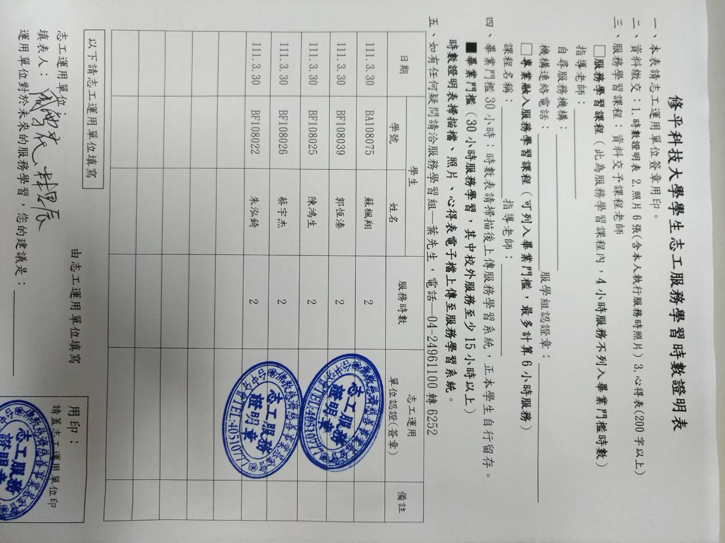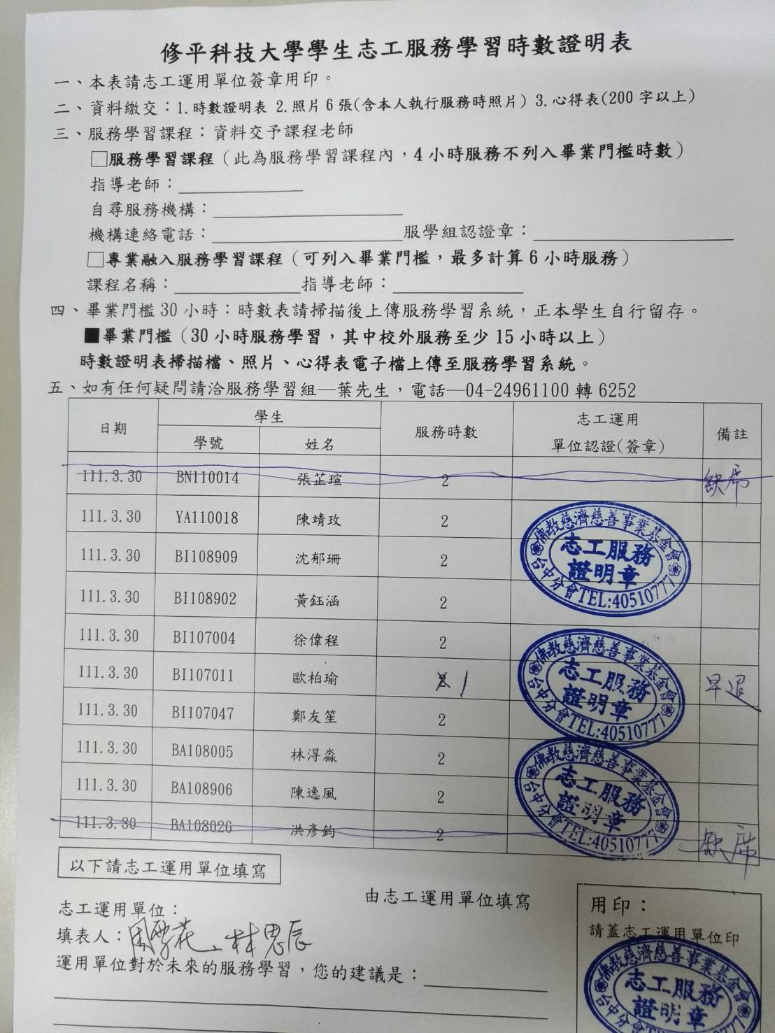 需由SIS進入上傳時數表,心得表及照片, 心得表請同時emai到 ssching@hust.edu.tw 主旨: xxxxx20220330務學習心得,xxxxx為學號姓名
