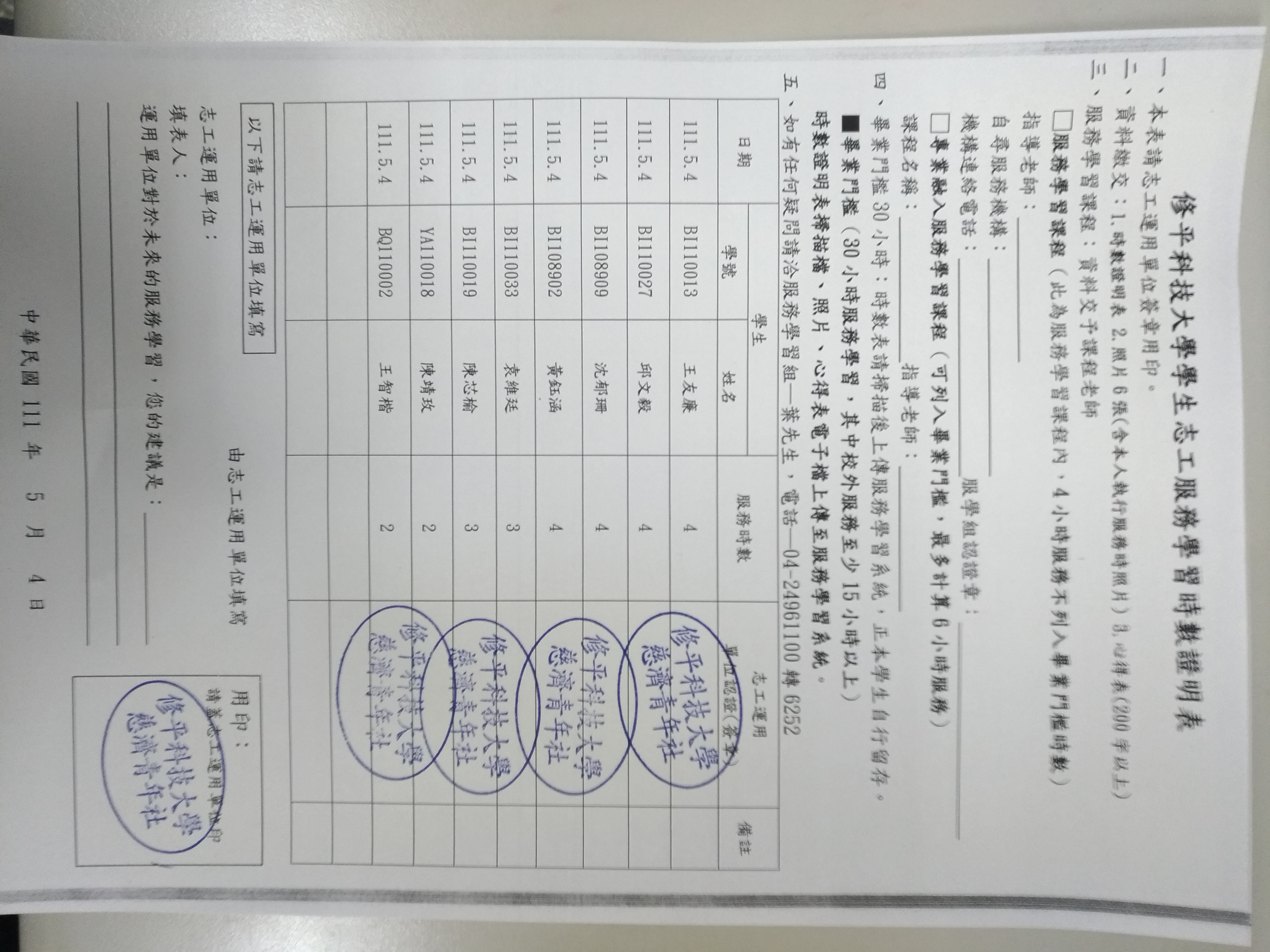 需由SIS進入上傳時數表,心得表及照片, 心得表請同時emai到 ssching@hust.edu.tw 主旨: xxxxx20220504務學習心得,xxxxx為學號姓名