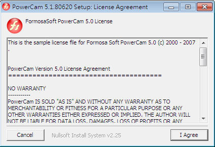 (1) 執行PowerCam 5.1_setup.exe,點選「I Agree」: