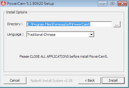 1.請先安裝PowerCam 5.1。 (此版本才有註冊碼)