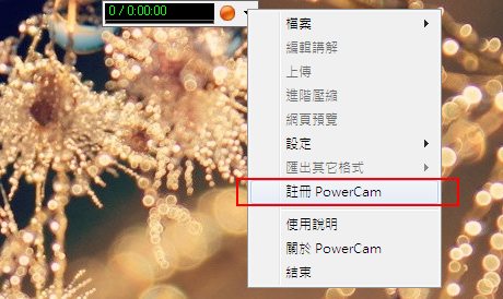 2.於工具列點選▼,並選擇註冊PowerCam: