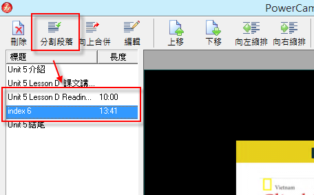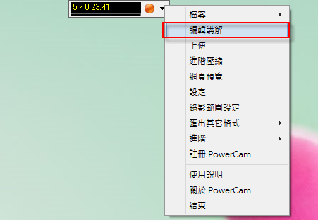 1.執行要分割的powercam教材,選擇「編輯講解」: