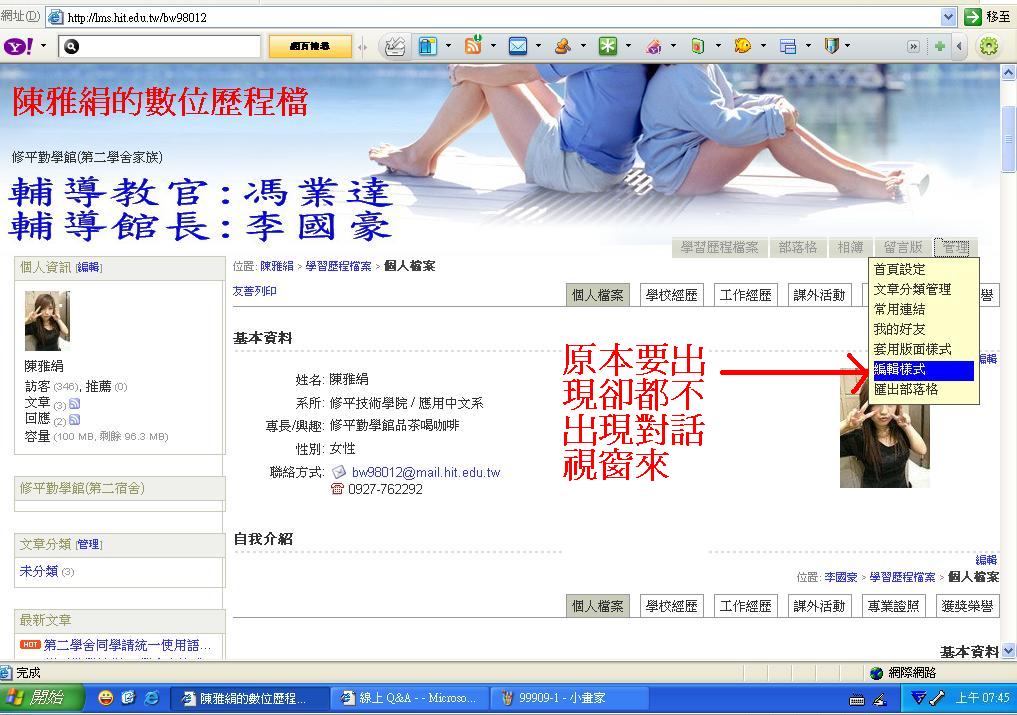 當使用者要編輯照片區功能也不能新增及上傳,所以旁邊的功能也都不能使用了~感謝你看完所有對照表,這樣你就會明白那個地方有問題了。因為我找很多學弟及學妹並用了32台電腦,在這32台電腦都無法讓我進入編輯。